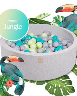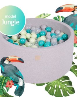 Grijze ballenbak met 250 ballen – Jungle set – 90×30 cm