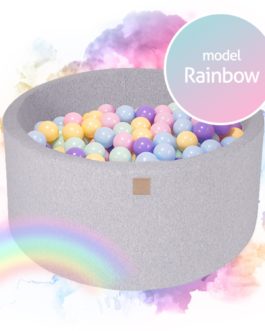 Grijze ballenbak met 250 ballen – Rainbow set – 90×40 cm