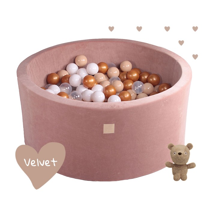 Ballenbak Teddy Bear Set VELVET met 250 ballen | 40 cm hoog | Kleur ballen: Goud, Wit, Transparant en Beige